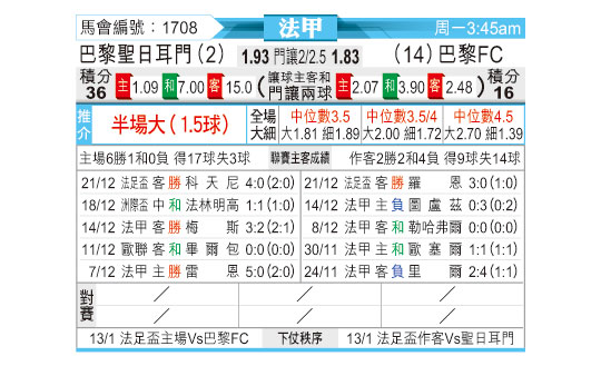 [法甲] 巴黎圣日耳曼vs巴黎足球会