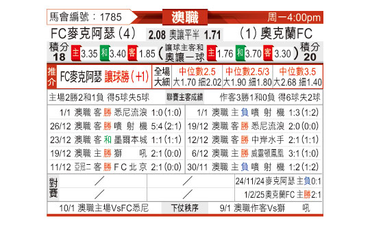[澳超] 麦克阿瑟FCvs奥克兰FC