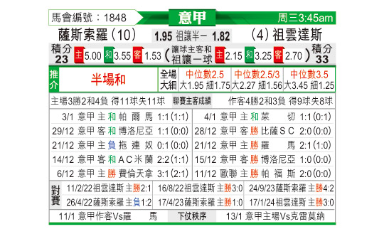 [意甲] 萨索洛vs尤文图斯