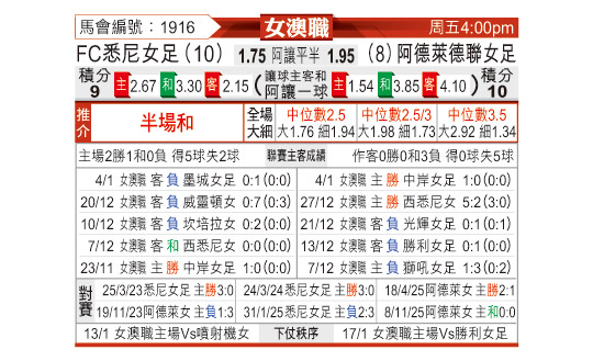 [澳女联] 悉尼女足vs阿德莱德联女足