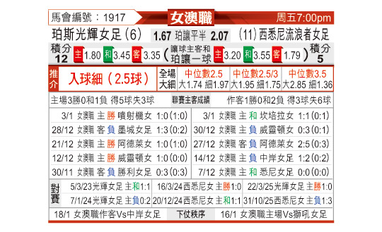[澳女联] 珀斯光辉女足vs西悉尼流浪者女足