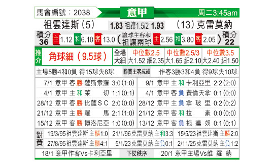 [意甲] 尤文图斯vs克雷莫纳