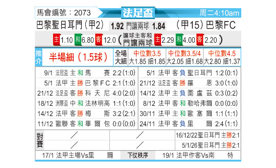 [法足杯] 巴黎圣日耳曼vs巴黎足球会