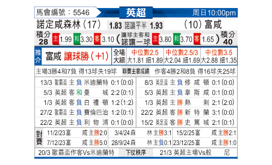 [英超] 诺丁汉森林vs富勒姆
