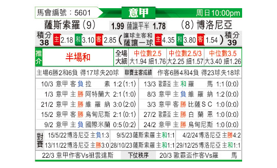 [意甲] 萨索洛vs博洛尼亚