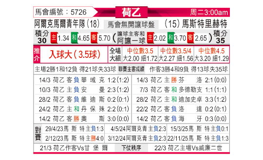[荷乙] 阿尔克马尔青年队vs马斯特里赫特