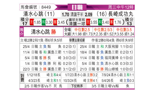 [日职联] 清水鼓动vs长崎成功丸