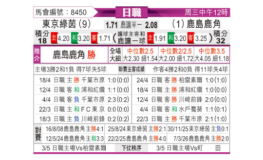 [日职联] 东京绿茵vs鹿岛鹿角