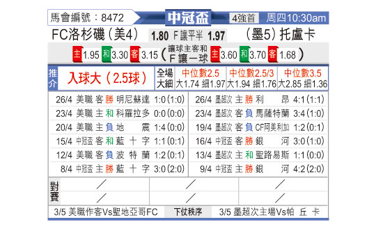 [美冠联] 洛杉矶FCvs托卢卡